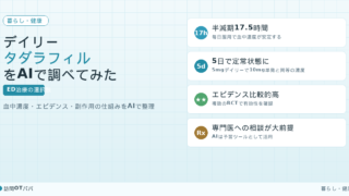 ED治療薬「タダラフィル」のデイリー服用について、血中濃度の推移・エビデンスレベル・副作用の仕組みをAIと一緒に調べました。医療職の視点で分かりやすくまとめています。