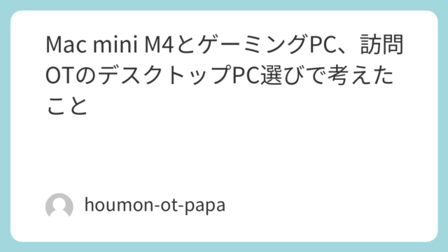 Mac mini M4とゲーミングPC、訪問OTのデスクトップPC選びで考えたこと