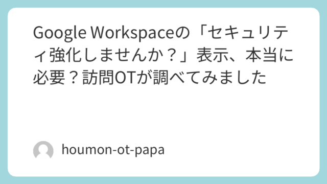 Google Workspaceの「セキュリティ強化しませんか?」表示、本当に必要?訪問OTが調べてみました