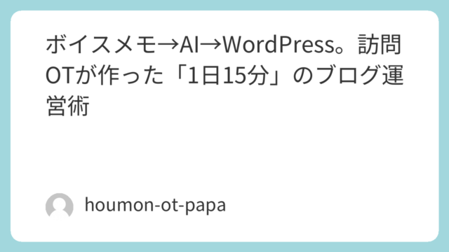 ボイスメモ→AI→WordPress。訪問OTが作った「1日15分」のブログ運営術