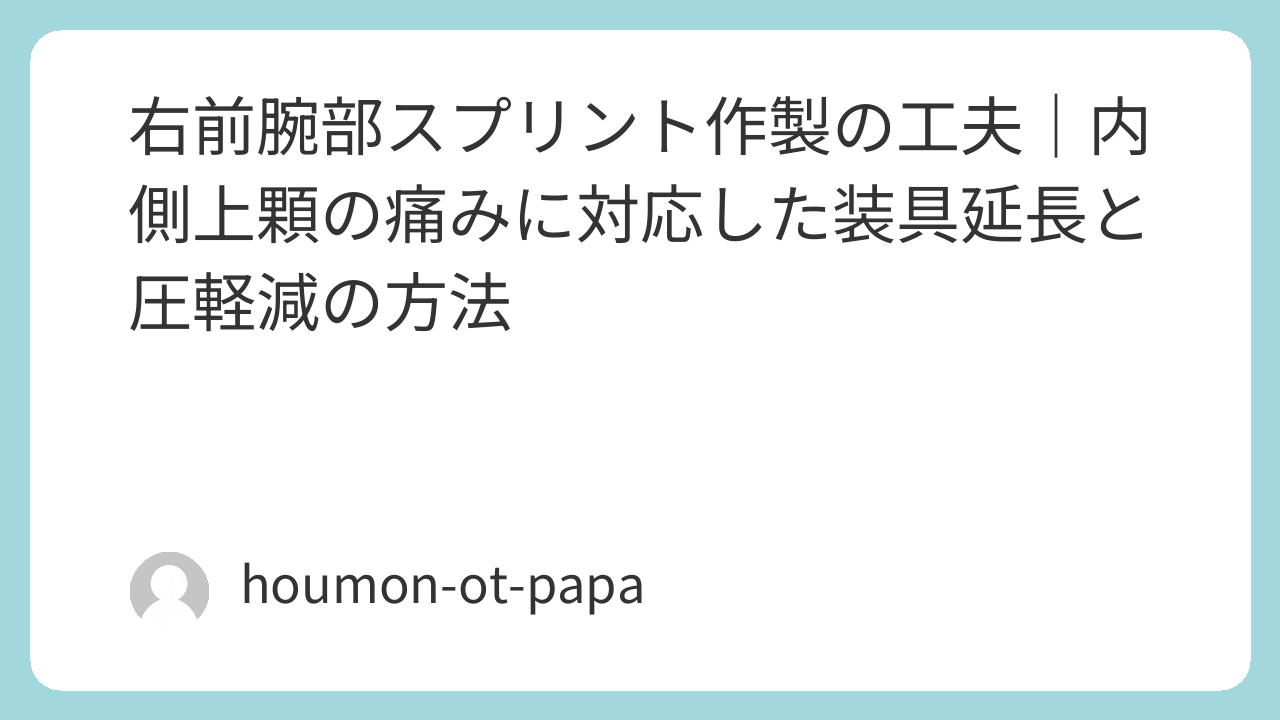 訪問リハビリの現場では、同じ患者さんでも左右の腕でスプリント(装具)のフィッティングがまったく異なることがあります。今回は右前腕部スプリントを作製する中で直面した課題と、その対応について記録しておきたいと思います。