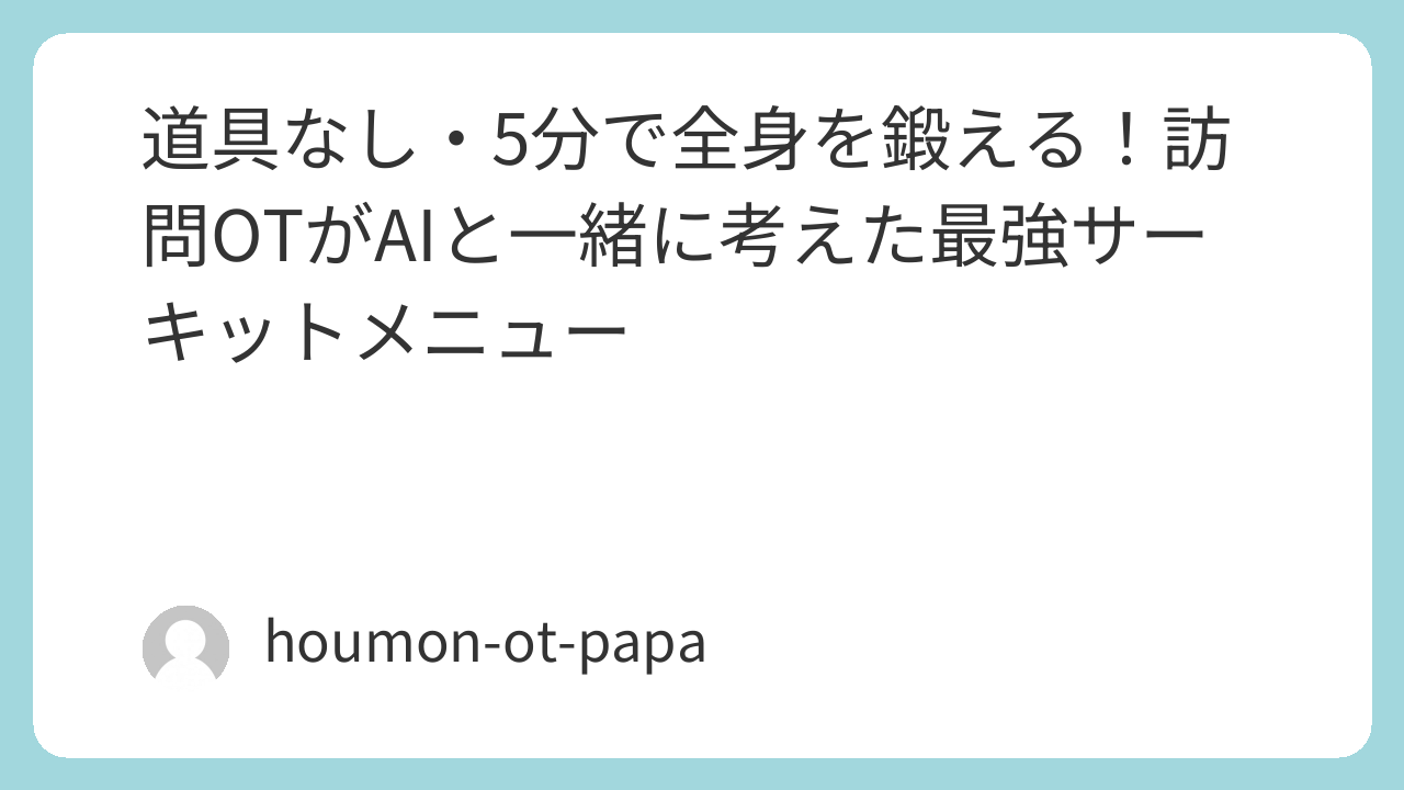 道具なし・5分で全身を鍛える!訪問OTがAIと一緒に考えた最強サーキットメニュー