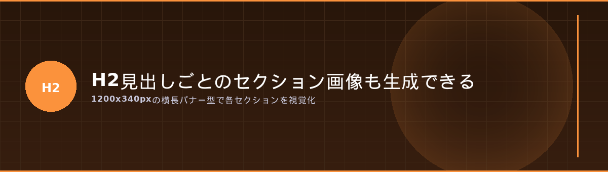 アイキャッチだけでなく、記事内のH2見出しに対応したセクションヘッダー画像も同時に生成できるようにしました。