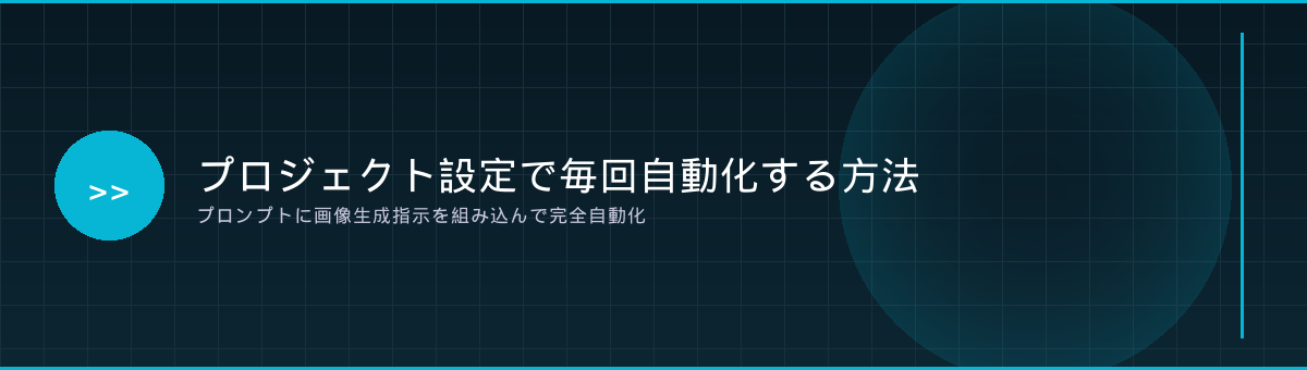 プロンプトに含める内容としては、画像のサイズ指定(1200×630px、1200×340px)、デザイン方針(テーマに応じた配色変更、カード型レイアウトなど)、ファイル命名規則といった情報です。一度設定すれば、あとは毎回自動で同じクオリティの画像が生成されます。