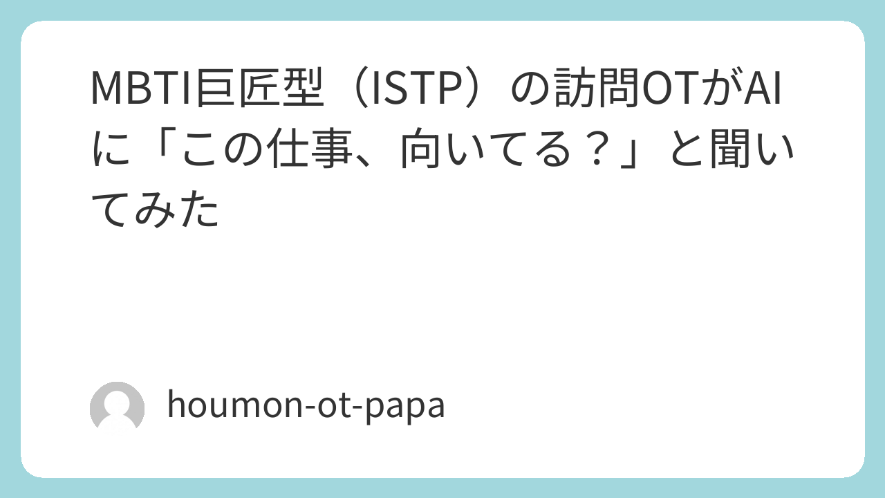 MBTI巨匠型(ISTP)の訪問OTがAIに「この仕事、向いてる?」と聞いてみた
