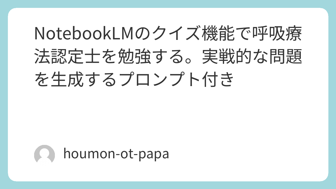NotebookLMのクイズ機能で呼吸療法認定士を勉強する。実戦的な問題を生成するプロンプト付き